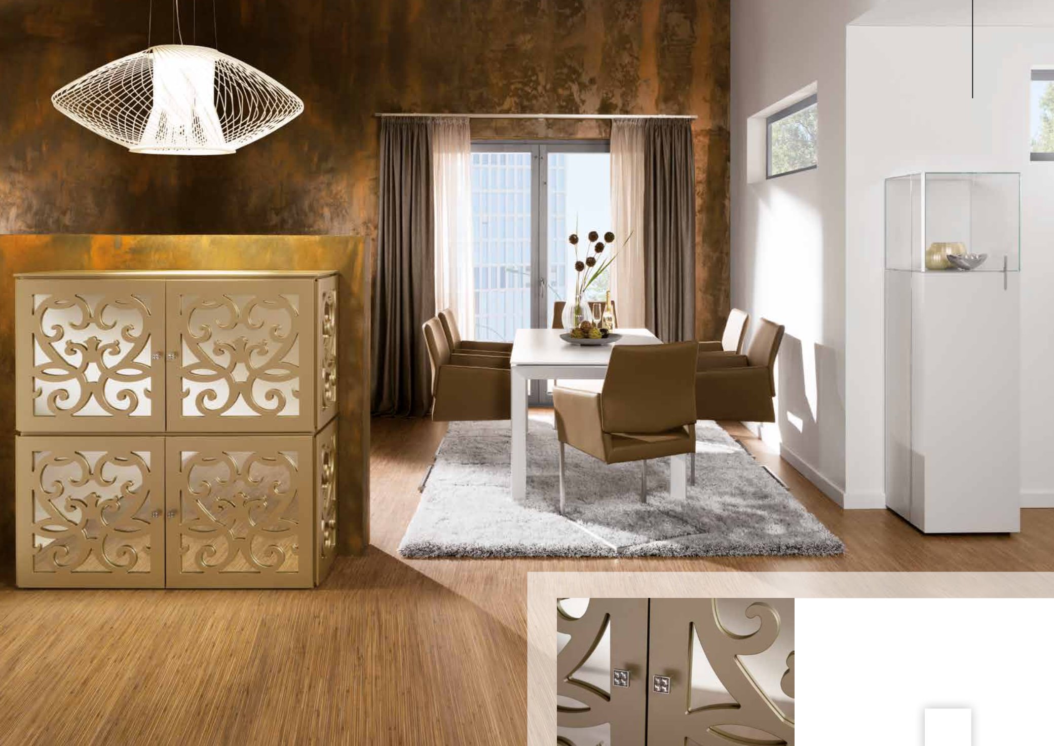 Sideboard. Die moderne und etwas exzentrische anmutende Deckenleuchte
