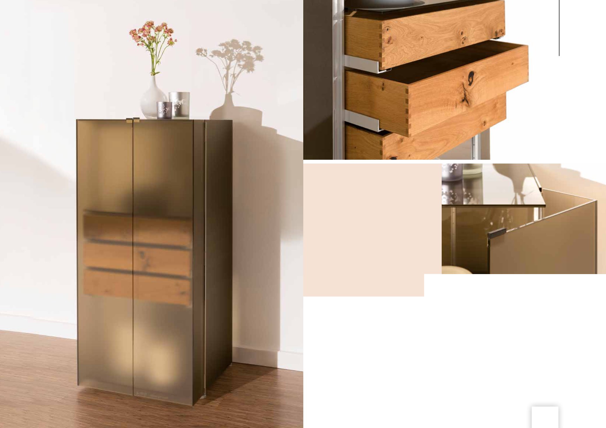 Möbelstück gibt es auch in Klarglas mit Vitrineneffekt.